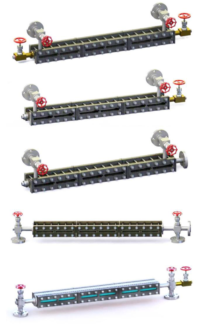 UB series glass Liquid Level Gauge consists of a meter body, an upper valve, a lower valve and a drain valve. The upper and lower mounting flanges are connected to the corresponding flanges on the container to form a connector. The actual height of the liquid level in the container can be directly observed through the Glass plate . Safety protection devices are installed in the upper and lower valves. When the Glass plate is accidentally damaged, , the protective steel ball automatically seals under the action of the internal pressure of the container to prevent the liquid in the container from continuing to leak.